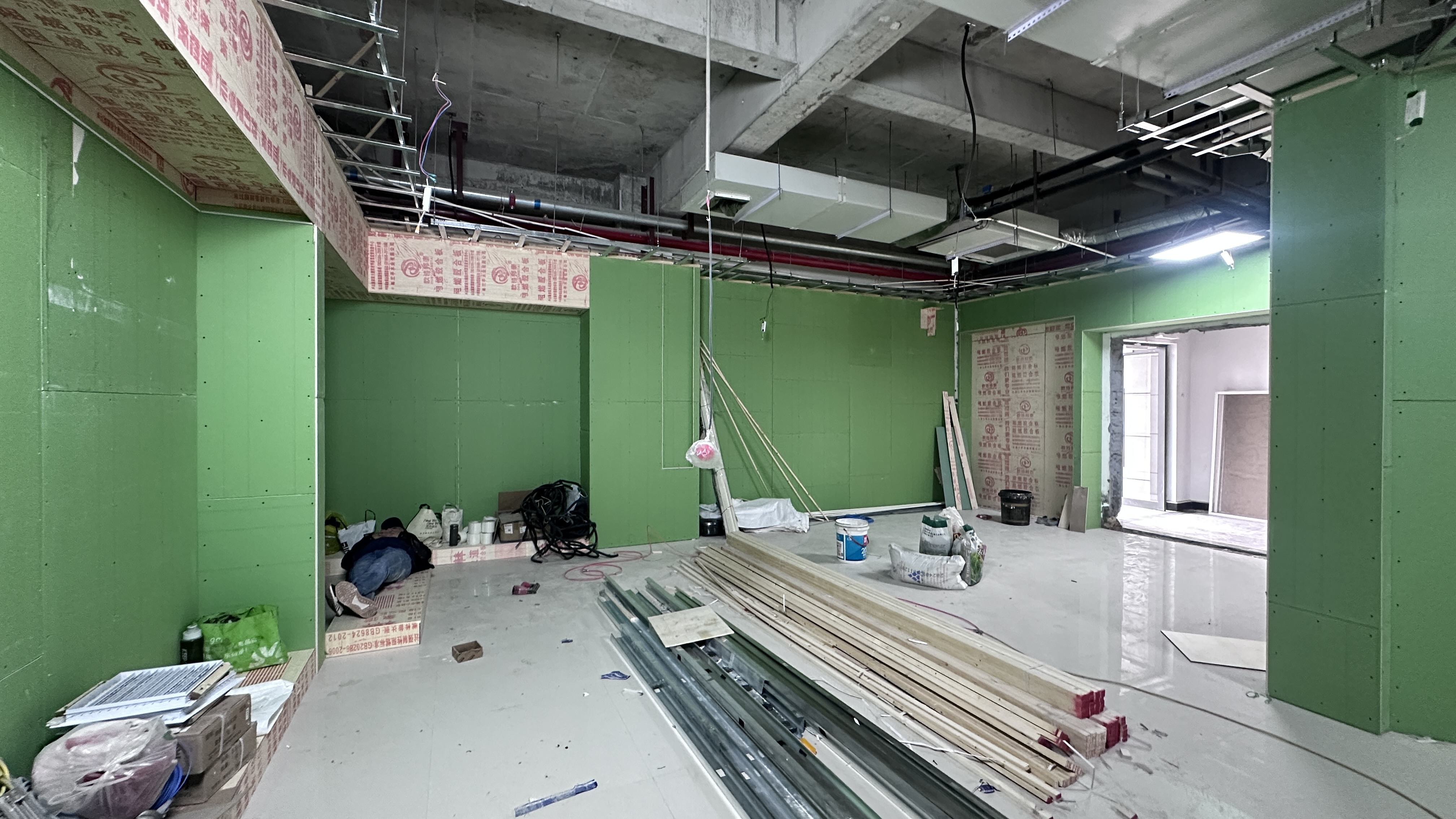 準(zhǔn)備工作到位,正式的入場施工便得以進(jìn)行。展館的建設(shè),是讓原始空間煥然一新, 而新的前提就是“破舊”,即按照設(shè)計(jì)圖紙及施工圖紙,將無用或有礙的頂、地、墻等進(jìn)行拆除轉(zhuǎn)運(yùn),與此同時(shí),施工團(tuán)隊(duì)依據(jù)施工圖紙,謹(jǐn)慎布防,保留基礎(chǔ)線路管道及承重墻體不受損害,從而最大程度保護(hù)所需基礎(chǔ)配件,為后續(xù)展廳建設(shè)中電氣的布局和使用預(yù)留基礎(chǔ),節(jié)省建設(shè)成本,更充分保障電力、技術(shù)設(shè)施等順利運(yùn)行。