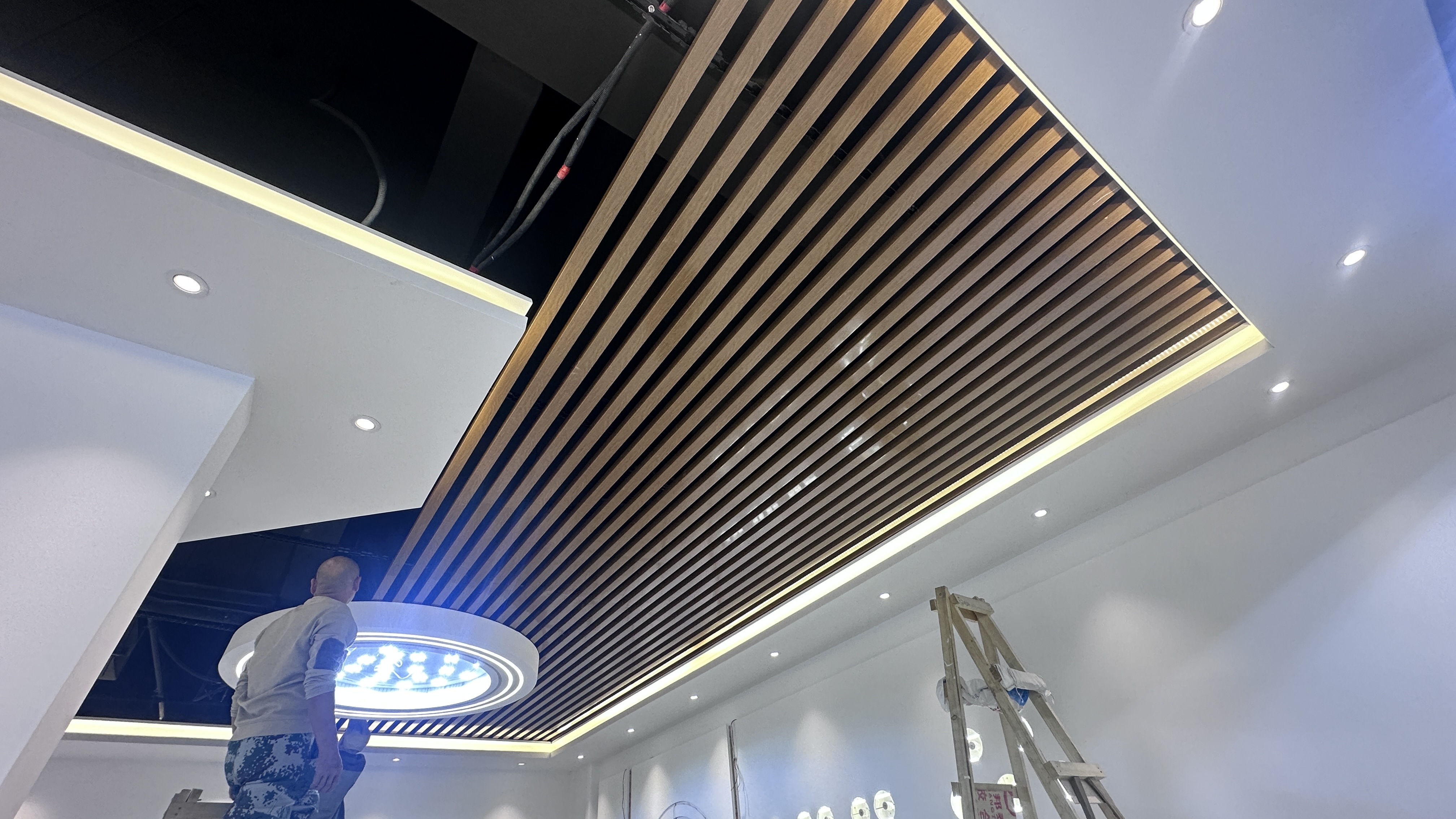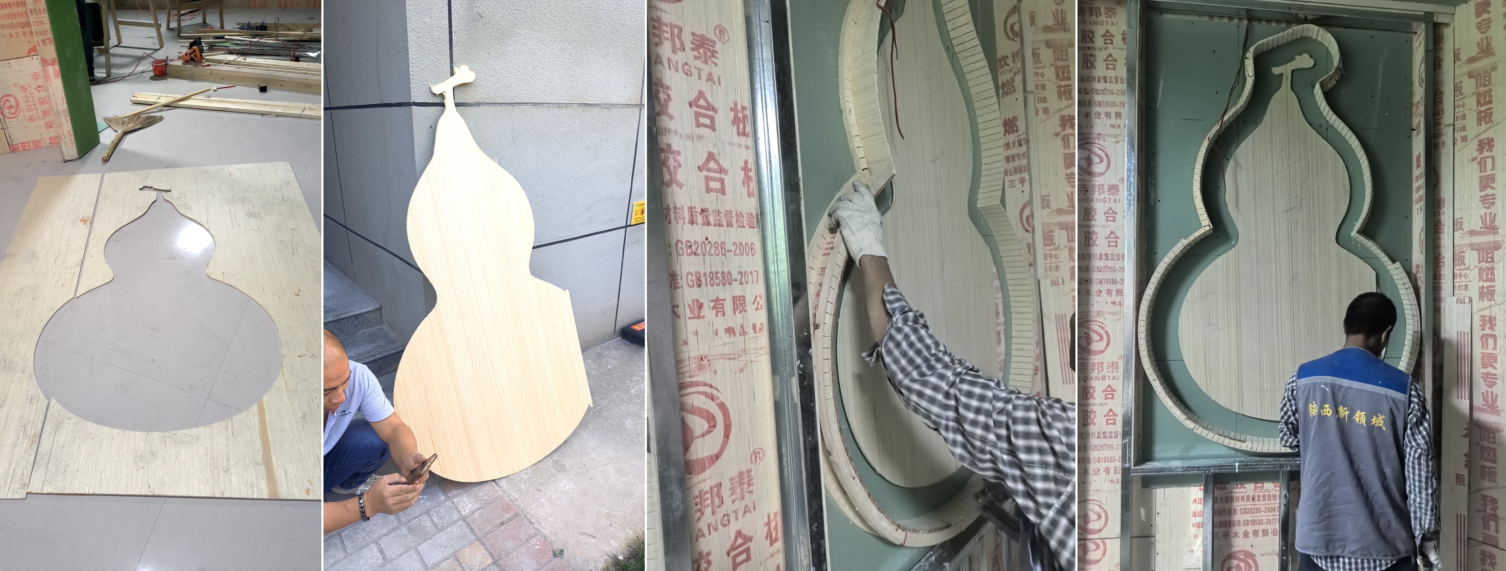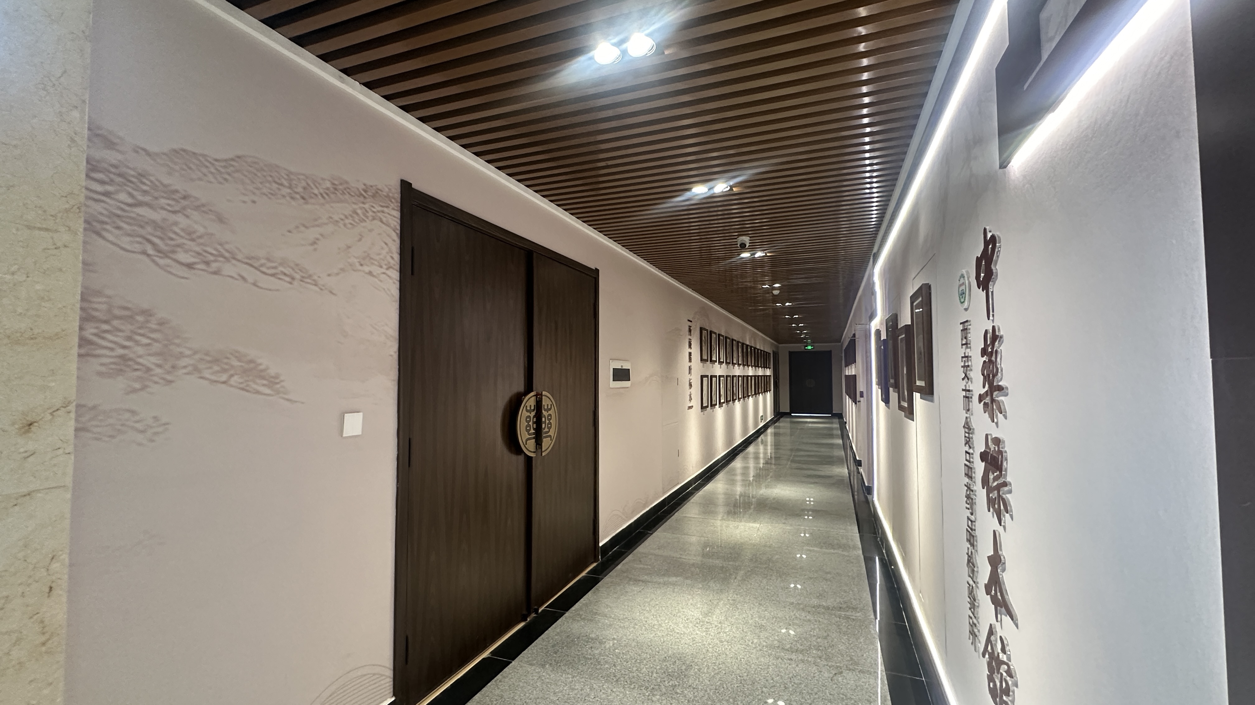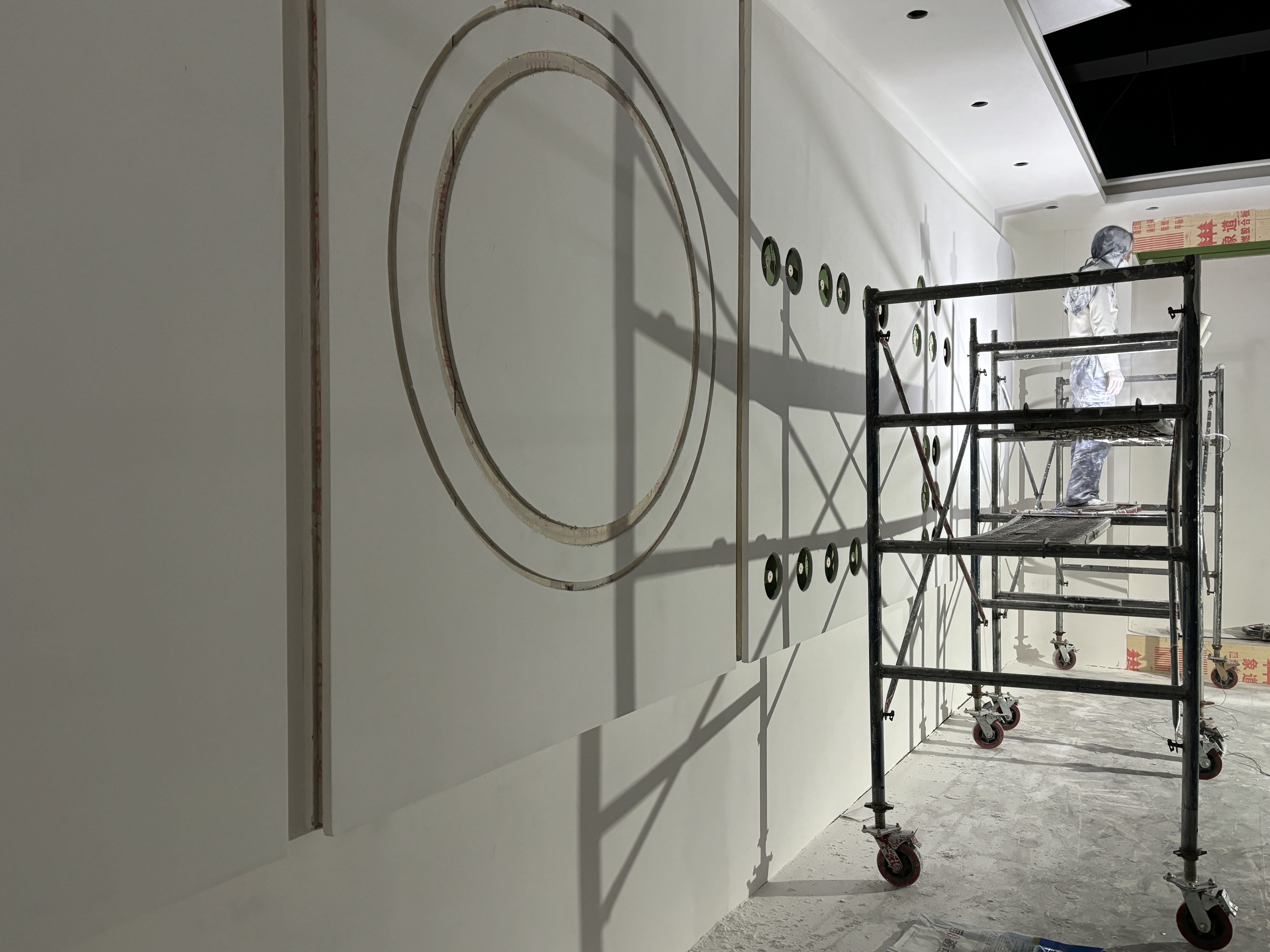 施工作業(yè),是一場“腦”與“力”并肩作戰(zhàn)的過程,它大到一些超重材料的組裝搭建,細(xì)到毫厘間的尺寸銜接和角度調(diào)控。在中藥標(biāo)本館的施工初期,項(xiàng)目團(tuán)隊(duì)依據(jù)施工方案及設(shè)計(jì)方案,利用高質(zhì)量輕鋼龍骨做好墻面骨架,用隔音棉填充后再用石膏板封平,并加以鋁塑板、碳晶板、免漆板等板材貼面,后期飾面則采用高光領(lǐng)面烤漆等,由此完成展館的基礎(chǔ)架構(gòu)。后續(xù)依據(jù)展館設(shè)計(jì)及展示需求,充分完善電路預(yù)埋、設(shè)備安裝、廣告安裝、展柜入場等工序,妥善處理好各步驟施工作業(yè)。