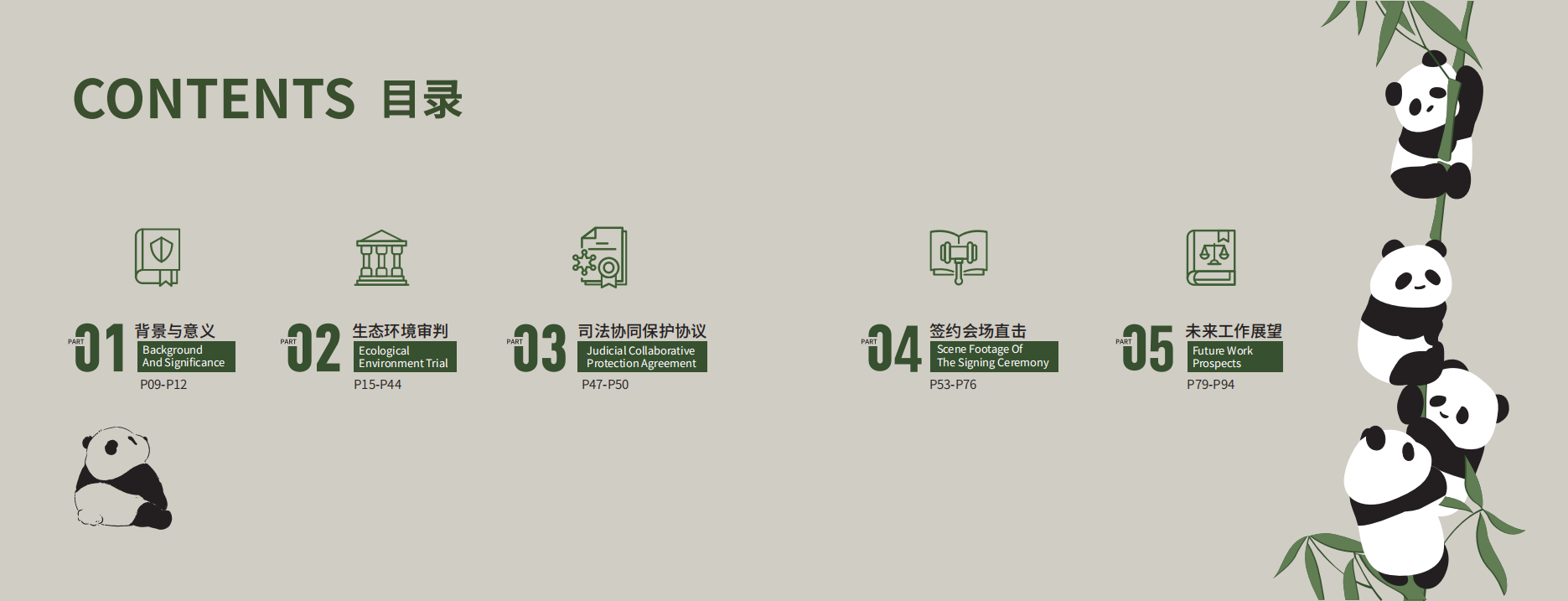 本畫冊(cè)為“環(huán)大熊貓國(guó)家公園司法協(xié)同保護(hù)《西安協(xié)議》”,其核心內(nèi)容基于西安市中級(jí)人民法院及陜甘川三省其他13家法院在生態(tài)環(huán)境保護(hù)方面的工作,對(duì)大熊貓國(guó)家公園的司法協(xié)作保護(hù)已邁出的步伐進(jìn)行記錄展示,及對(duì)未來保護(hù)工作的進(jìn)行做出計(jì)劃。