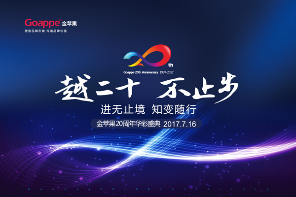 2017年7月16日,是金蘋果廣告成立20周年的日子。當天,金蘋果全體員工,諸多客戶及社會各界好友齊聚一堂,在西安天驪君廷大酒店共同見證了金蘋果成立20周年華彩盛典。